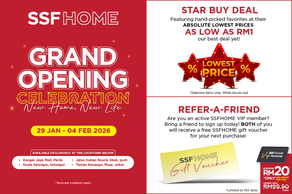 Kota Samarahan is about to get a major home upgrade! Our SSFHOME Roadshow will be at The Summer Shopping Mall! From December 1st to 14th, 2025, dive into a sea of incredible discounts on everything from cozy bedding and kitchen essentials to stylish new fragrances and home decor. Plus, every purchase bags you a sensational